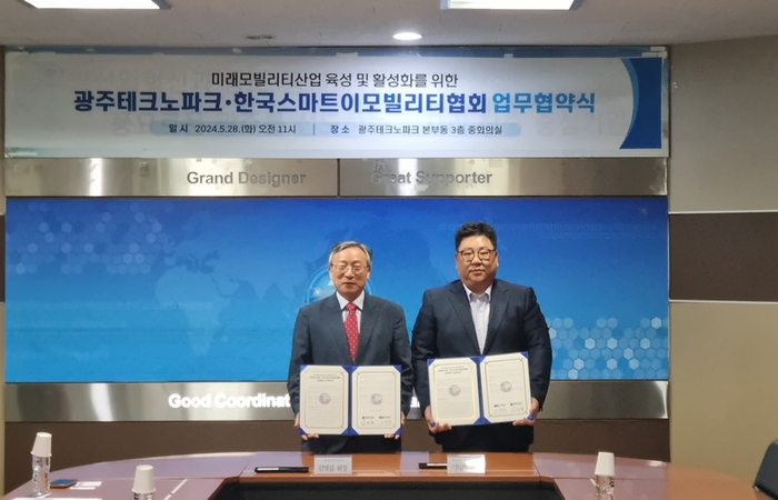 지난 28일 광주테크노파크에서 미래모빌리티 육성과 활성화를 위한 업무협약을 맺었다.